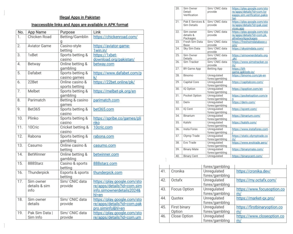 The National Cyber Crime Investigation Agency (NCCIA) has launched a major crackdown on illegal online gambling and unregulated trading apps in Pakistan, declaring 46 mobile applications illegal across the country.