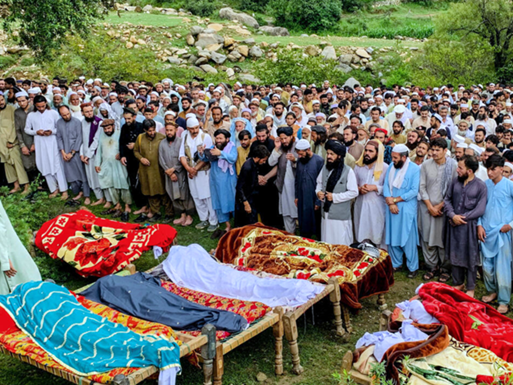Mourners offer funeral prayers for flood victims in Pakistan’s Bajaur district. Photo: AFP